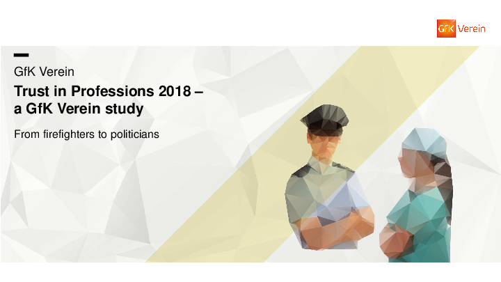 The 2018 edition of the GfK Association's Trust in Professions survey now covers 20 countries worldwide. Mexico is a new addition. Argentina, Australia, Belgium, Canada, Nigeria, Austria, Switzerland and the Philippines are no longer part of this study. Occupations are functionally of central importance in societies based on the division of labor: citizens and consumers primarily come into contact with representatives of occupations outside their private lives. Mutual trust is essential to these relationships and transactions. The present study covers the empirically surveyed trust in more than 30 professions with which people enter into relationships either directly or indirectly, i.e., mediated by the media.
