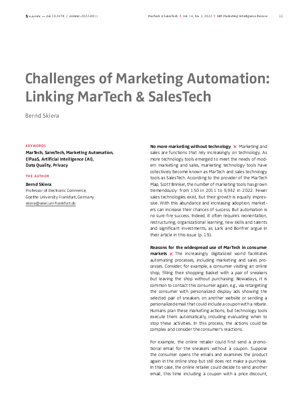 Challenges of Marketing Automation: Linking MarTech and SalesTech