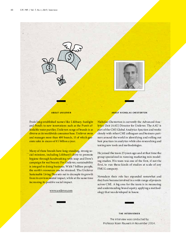 From Metrics to Action – Interview with Nicholas Chesterton, Unilever (2015). NIM Marketing Intelligence Review, 7(1), 48-53. https://doi.org/10.1515/gfkmir-2015-0007
