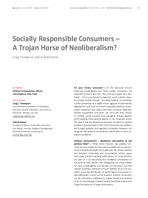 Socially Responsible Consumers – A Trojan Horse of Neoliberalism?