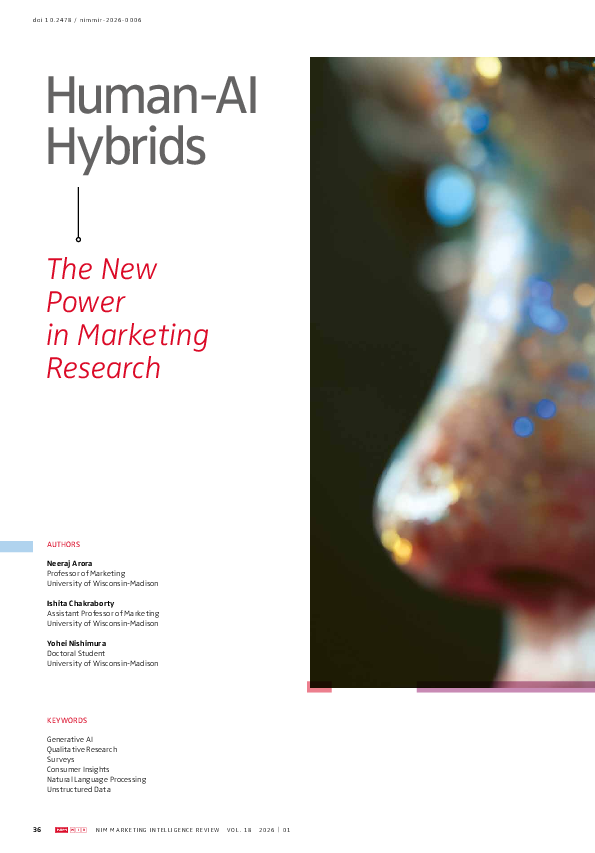 Arora, N., Chakraborty, I. & Nishimura, Y. (2026). Human-AI Hybrids: The New Power in Marketing Research. NIM Marketing Intelligence Review, 18(1), 36-41. https://doi.org/10.2478/nimmir-2026-0006