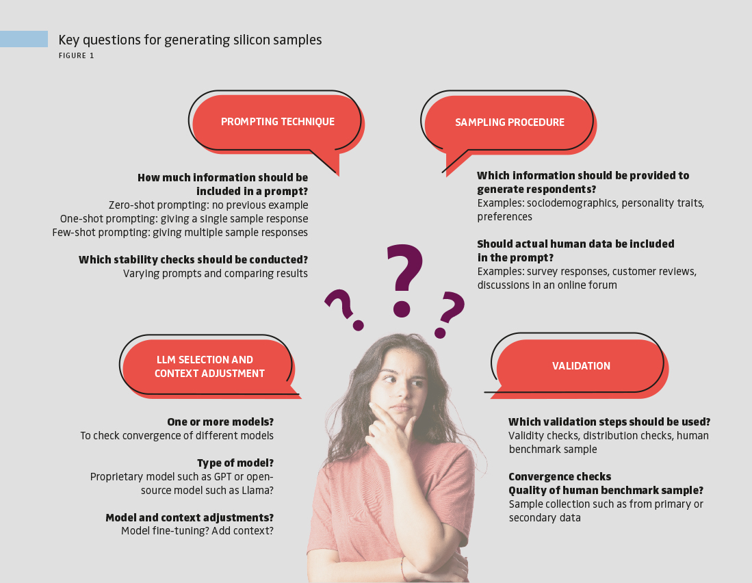 LLMs may better approximate human behavior soon, especially once they integrate multimodal inputs such as image, video and voice and develop more nuanced human-like reasoning capabilities – a topic that has recently been increasingly debated in the academic literature. Advances in prompt design and context infusion to LLMs will also contribute to advancing silicon samples as human proxies. Unlike with human data, researchers cannot assume that an LLM’s responses will automatically consider a lifetime of experiences and personal development. We do not know exactly how the mind works, nor how similar LLMs are to the human mind. What is clear, however, is that LLM architectures were not built in the same way the human mind evolved through biological processes. While LLMs can mimic human responses, they do not have a nervous system and thus may “experience” the world differently, thus perhaps lacking the very foundation for human judgment. This divergence might fundamentally limit an LLM’s ability to capture human decision-making, emotional responses and cultural diversity. For this reason, validation is likely to remain crucial when working with silicon samples.