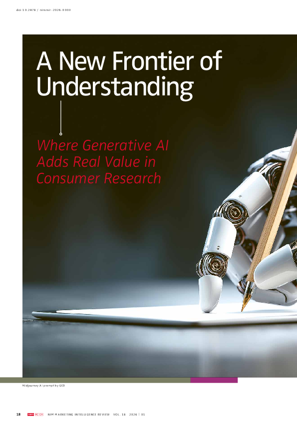 Hewett, K. & Yoo, K. (2026). A New Frontier of Understanding: Where Generative AI Adds Real Value in Consumer Research. NIM Marketing Intelligence Review, 18(1), 17-23. https://doi.org/10.2478/nimmir-2026-0003