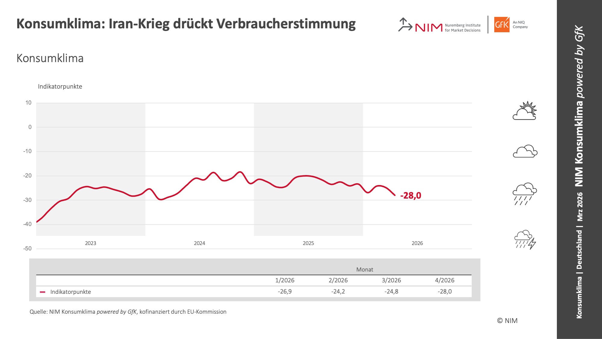 Konsumklima: Iran-Krieg drückt Verbraucherstimmung