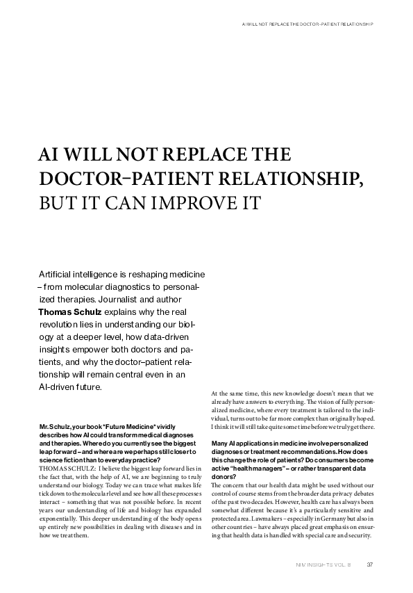 AI Will Not Replace the Doctor-Patient But it Can Improve it Interview with Thomas Schulz, science journalist and author (2025). NIM Insights Research Magazin Vol. 8 - AI.Meets.Consumer