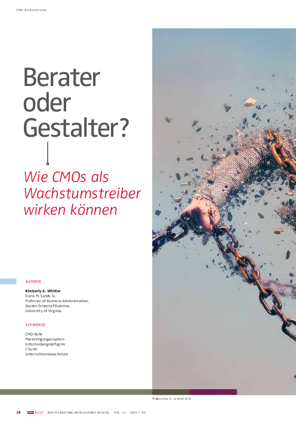 Manager wie Wissenschaftler sind sich einig: Keine Unternehmensfunktion ist so wichtig für nachhaltiges und profitables Wachstum wie das Marketing. Laut Accenture wenden sich CEOs vorrangig an Chief Marketing Officers (CMOs), wenn es darum geht, Wachstum zu beschleunigen. Eine Studie von McKinsey zeigt, dass 83 % der weltweit befragten CEOs das Marketing als zentralen Wachstumstreiber betrachten. Trotz dieser klaren Erwartungshaltung variiert die konkrete Ausgestaltung der CMO-Rolle erheblich – insbesondere hinsichtlich des Verantwortungsumfangs. In Unternehmen A etwa trägt der CMO volle Verantwortung für Marketing- und Markenstrategie, Pricing, Risikoanalysen, Produktdesign, Forschung und Datenaufbereitung, PR sowie interne und externe Kommunikation – und steuert damit nahezu alle entscheidenden Wachstumstreiber. In Unternehmen B hingegen beschränkt sich die Rolle des CMOs auf die Umsetzung operativer Werbe- und Verkaufsförderungsmaßnahmen. Obwohl auch hier Wachstum zu den erklärten Zielen gehört, bleibt der Einfluss des CMOs auf die strategische Ausrichtung und Umsetzung dieser Ziele weitgehend symbolisch.
