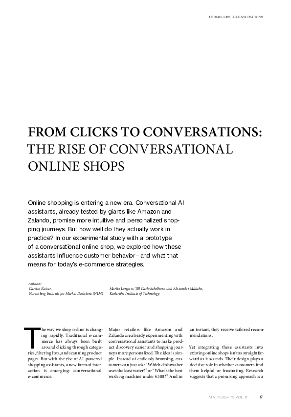 Kaiser, C., Langer, M., Schelhorn, T., & Mädche, A. (2025). From Clicks to Conversations. The Rise of Conversational Online Shops. NIM Insights Research Magazin Vol. 8 - AI.Meets.Consumer.