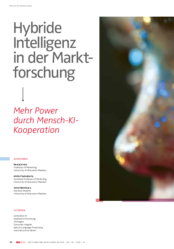 Arora, N., Chakraborty, I. & Nishimura, Y. (2026). Human-AI Hybrids: The New Power in Marketing Research. NIM Marketing Intelligence Review, 18(1), 36-41. https://doi.org/10.2478/nimmir-2026-0006