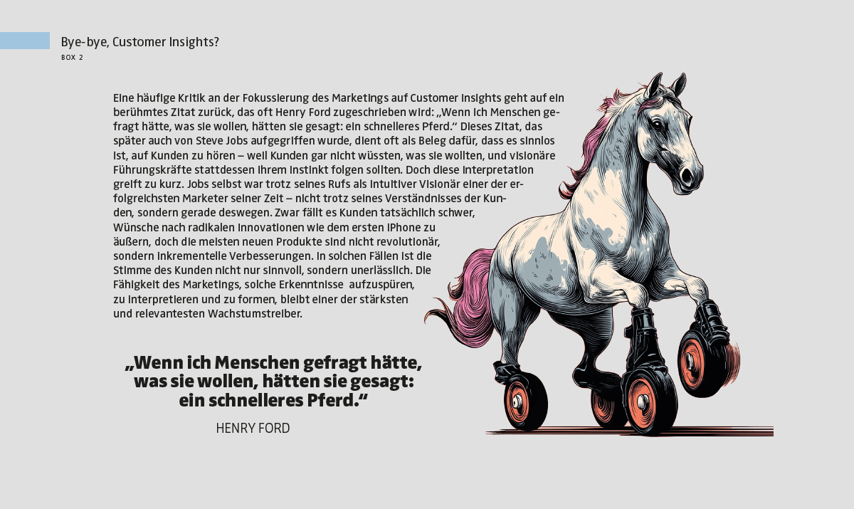 Solche Veränderungen sind – wie jeder Wandel – selten einfach. Doch gerade darin liegt für das Marketing eine besondere Chance: die eigene Rolle im Unternehmen neu zu definieren und aufzuwerten. Das gelingt jedoch nicht durch nostalgisches Festhalten an traditionellen Ansätzen. Das Marketing muss seine Tools an neue Realitäten anpassen und Unternehmen durch zunehmende Komplexität führen.