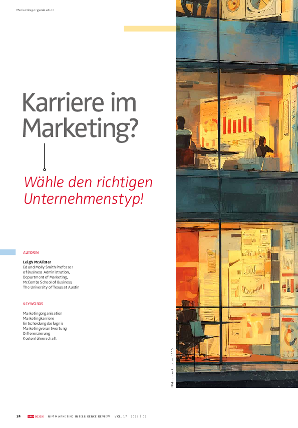 Die meisten Marketinglehrbücher gehen davon aus, dass Kundenzufriedenheit, Markenaufbau und nachhaltiges Wachstum primär durch das Marketing gesteuert werden. Sie beschreiben implizit einen einzigen Typ von Marketingorganisation, der für alle Marketingentscheidungen wie Segmentierung, Targeting und Positionierung zuständig ist und den Marketingmix verantwortet. Dieses Bild wird dadurch verfestigt, dass klassische Markenartikler wie Johnson & Johnson, Procter & Gamble und Unilever regelmäßig Gastvorträge an Universitäten halten und dort Top-Talente rekrutieren. Es ist daher kaum überraschend, dass Berufseinsteiger ihre erste Marketingstelle mit der Erwartung antreten, wichtige Entscheidungen treffen zu können und beruflich voranzukommen. Doch ist diese Erwartung gerechtfertigt? Welchen Einfluss hat das Marketing in der Unternehmenspraxis tatsächlich? Und sind Jobs im Marketing wirklich ein Karrieresprungbrett?