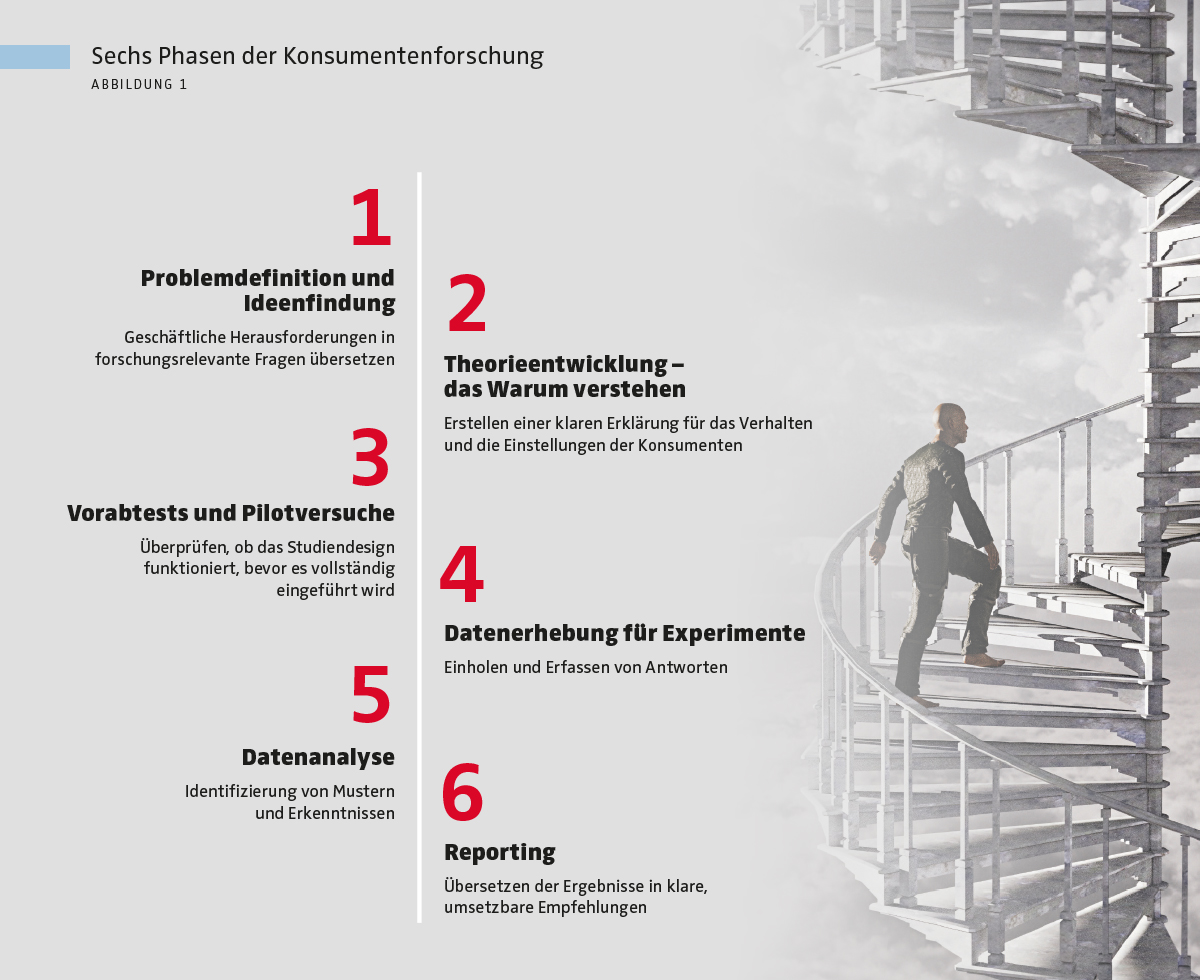 Marktforschungsprojekte durchlaufen meist einen ähnlichen Prozess von der Problemdefinition bis zum Reporting der Ergebnisse. Abbildung 1 zeigt die sechs zentralen Phasen dieses Prozesses. Wenn wir jede Phase einzeln betrachten, wird klar, wo GenAI echten Mehrwert schafft – und wo menschliches Urteilsvermögen unverzichtbar bleibt. Ziel des Einsatzes von GenAI ist es nicht, Forscher zu ersetzen, sondern sie zu entlasten: Während GenAI für mehr Breite und Tiefe, Geschwindigkeit und Präzision sorgt, gewinnen Menschen Zeit für anspruchsvollere Aufgaben.