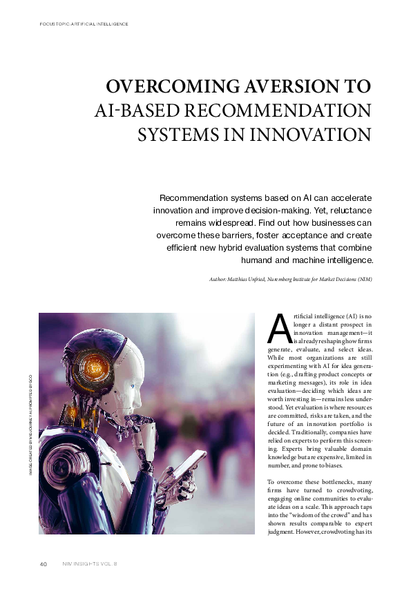 Unfried, M. (2025). Overcoming Aversion to AI-Based Recommendation Systems in Innovation. NIM Insights Research Magazin Vol. 8 - AI.Meets.Consumer