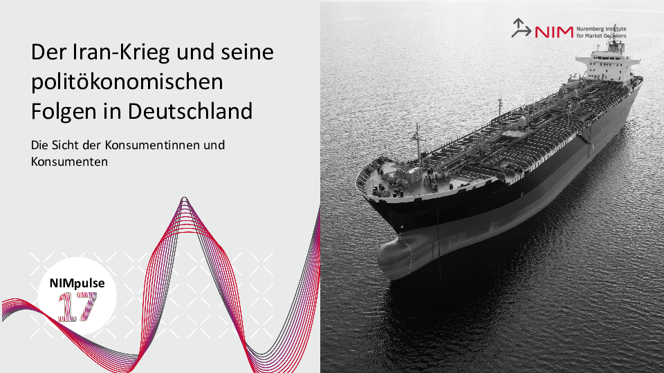 Die vorliegende Studie des Nürnberg Institut für Marktentscheidungen (NIM) liefert Antworten auf diese Fragen. Basis der Analyse ist eine im März 2026 durchgeführte repräsentative Befragung unter Erwachsenen in Deutschland. Die Ergebnisse zeigen nicht nur das Stimmungsbild einer Nation im Krisenmodus, sondern skizzieren auch die Erwartungen der Bürger an das künftige staatliche Handeln.
