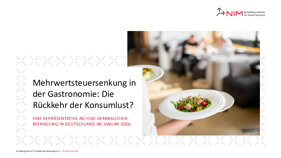 Das Nürnberg Institut für Marktentscheidungen (NIM) hat die Menschen in Deutschland im Januar 2026 zu ihren Haltungen und Erwartungen im Kontext der Mehrwertsteuersenkung befragt. Mit welchen Folgen rechnen die Befragten? Wie sinnvoll ist die Maßnahme und welche möglichen Effekte auf das Konsumverhalten lassen sich skizzieren?